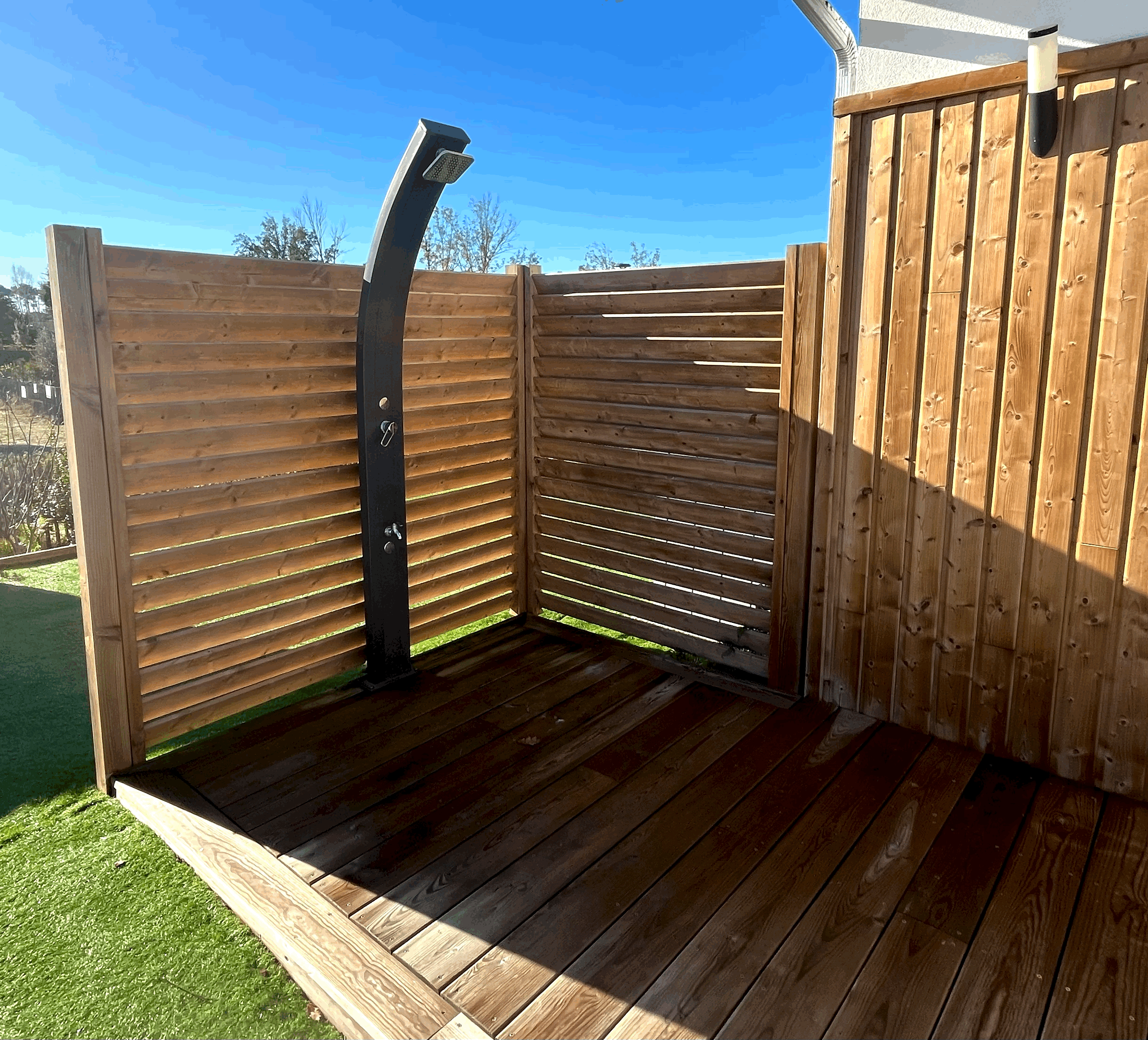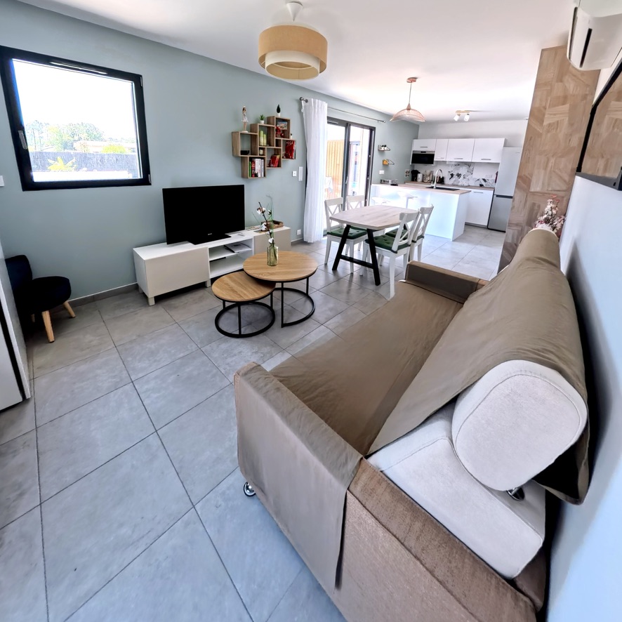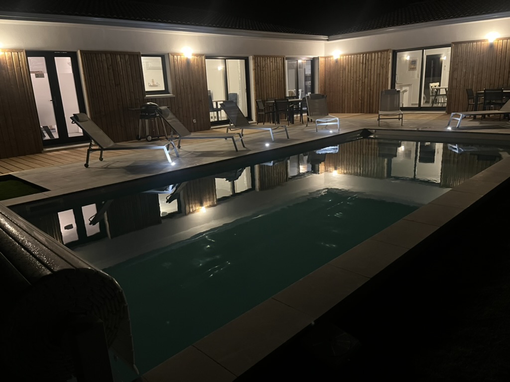 A votre disposition, une terrasse de 70m2 avec transats, tables et chaises, parasol, au bord de la piscine de 9,30m sur 4m (au sel, chauffée et sécurisée)