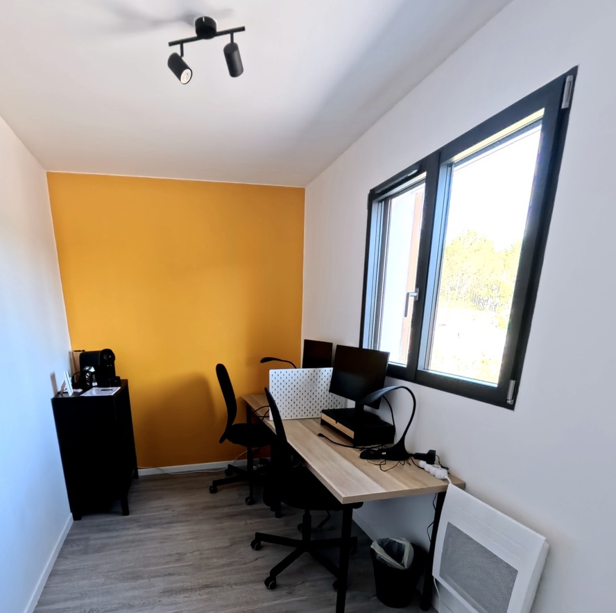 Vous avez un espace de co-working, isolé du reste de la maison avec deux postes de travail équipés d'écran, clavier, souris, câble Ethernet. La villa est équipé de Wifi Haut Débit.
